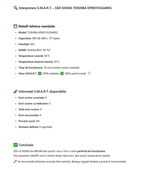 Am incarcat toate rapoartele Smart in Chat GPT pt intepretare, rezultatul = Stare Perfecta!